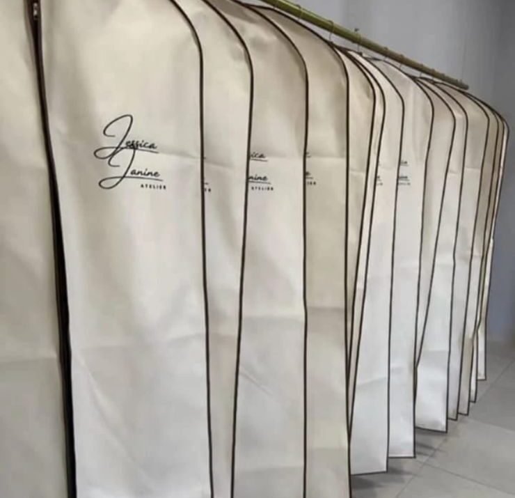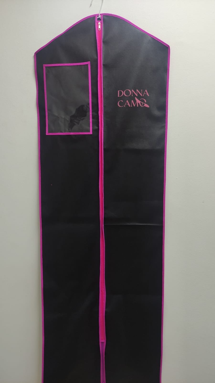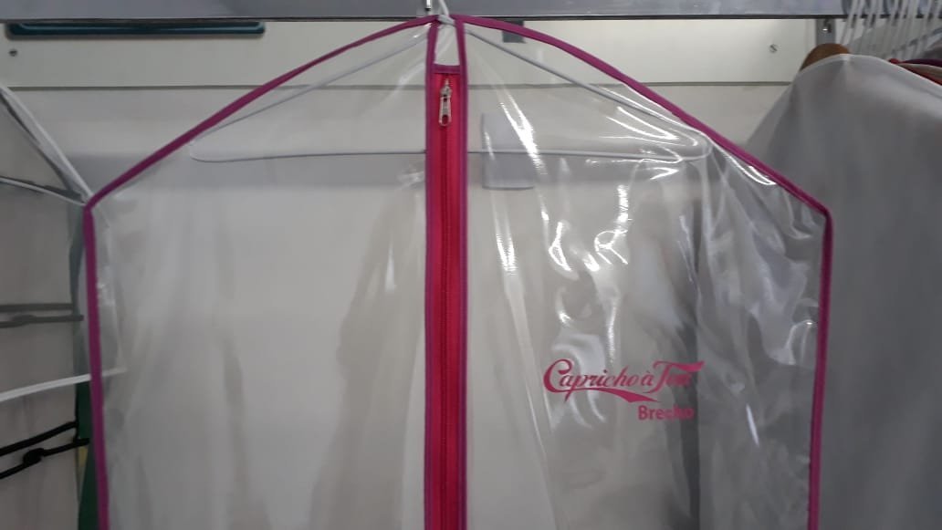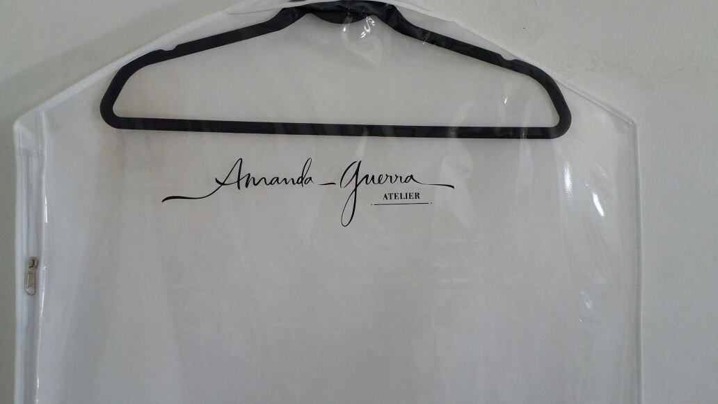 Capas personalizadas para vestidos curtos ou longos. Confeccionadas em pvc cristal 10, tnt na gramatura 80, zíper reforçado lateral ou frontal com alça inferior para dobra. O zíper, tnt, viés (borda das capas) e logo serão na cor de sua preferência. Medidas: 0.60 x 1.35/ 1.60/ 1.70/ 1.80 ou 2 metros