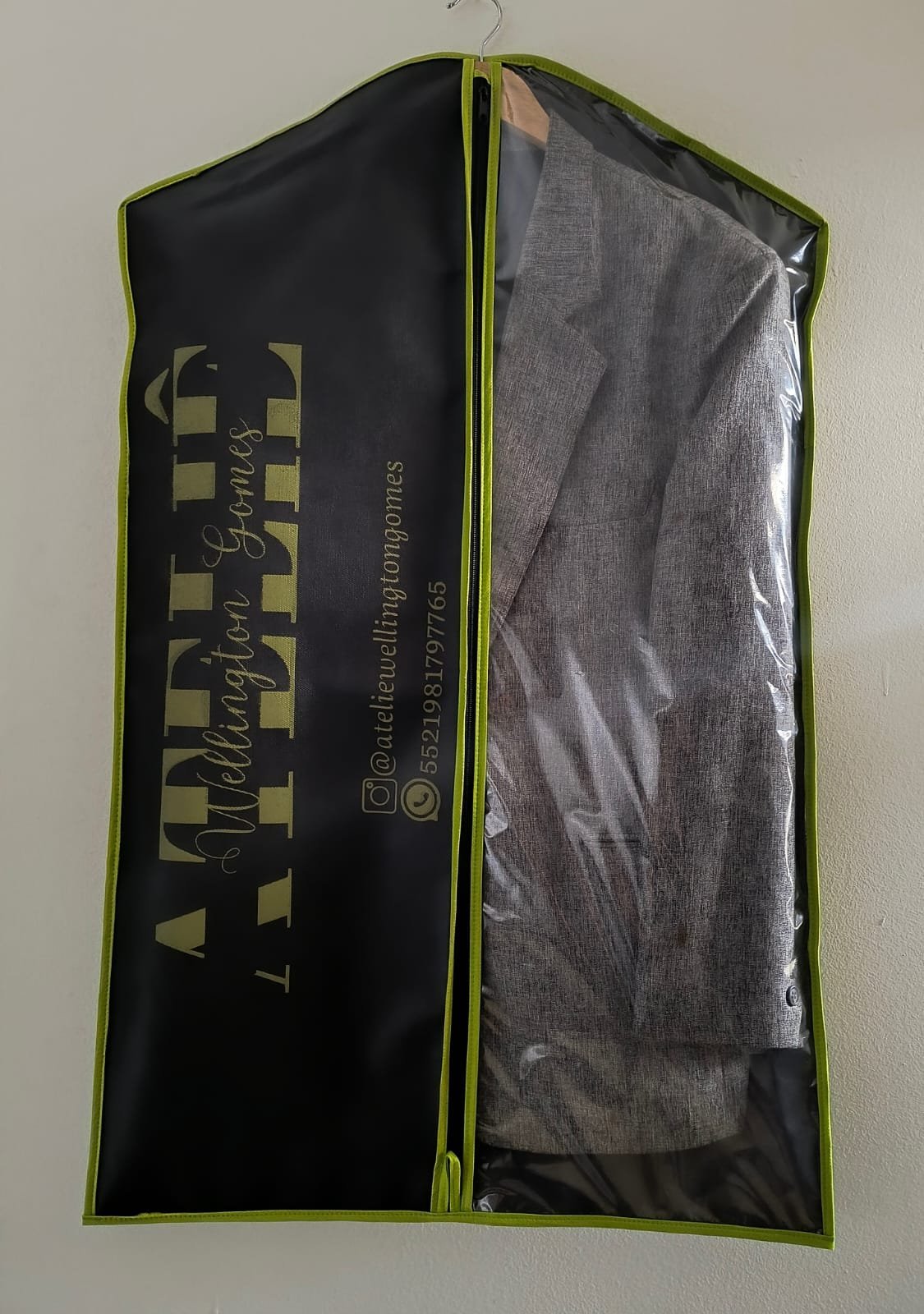 Capas personalizadas para vestidos curtos ou longos. Confeccionadas em pvc cristal 10, tnt na gramatura 80, zíper reforçado lateral ou frontal com alça inferior para dobra. O zíper, tnt, viés (borda das capas) e logo serão na cor de sua preferência. Medidas: 0.60 x 1.35/ 1.60/ 1.80 ou 2 metros