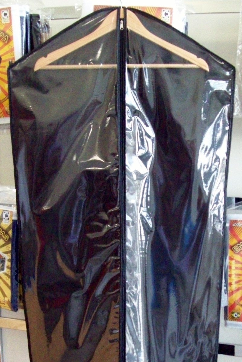 Capa Para Vestido longo, com frente transparente e fundo em tnt preto, com zíper reforçado e alça inferior para dobra Medidas: 060 x 1.35/1.60/1.80 e 2 mts