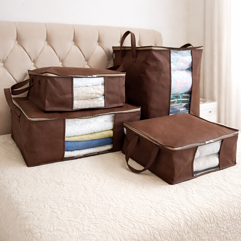 Deixe suas roupas de cama sempre organizadas, protegidas e prontas para uso com o Kit de Organizadores Cia das Capas. Ideal para manter tudo limpo, cheiroso e livre de mofo e umidade.