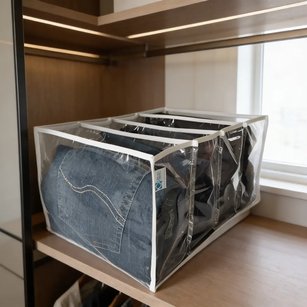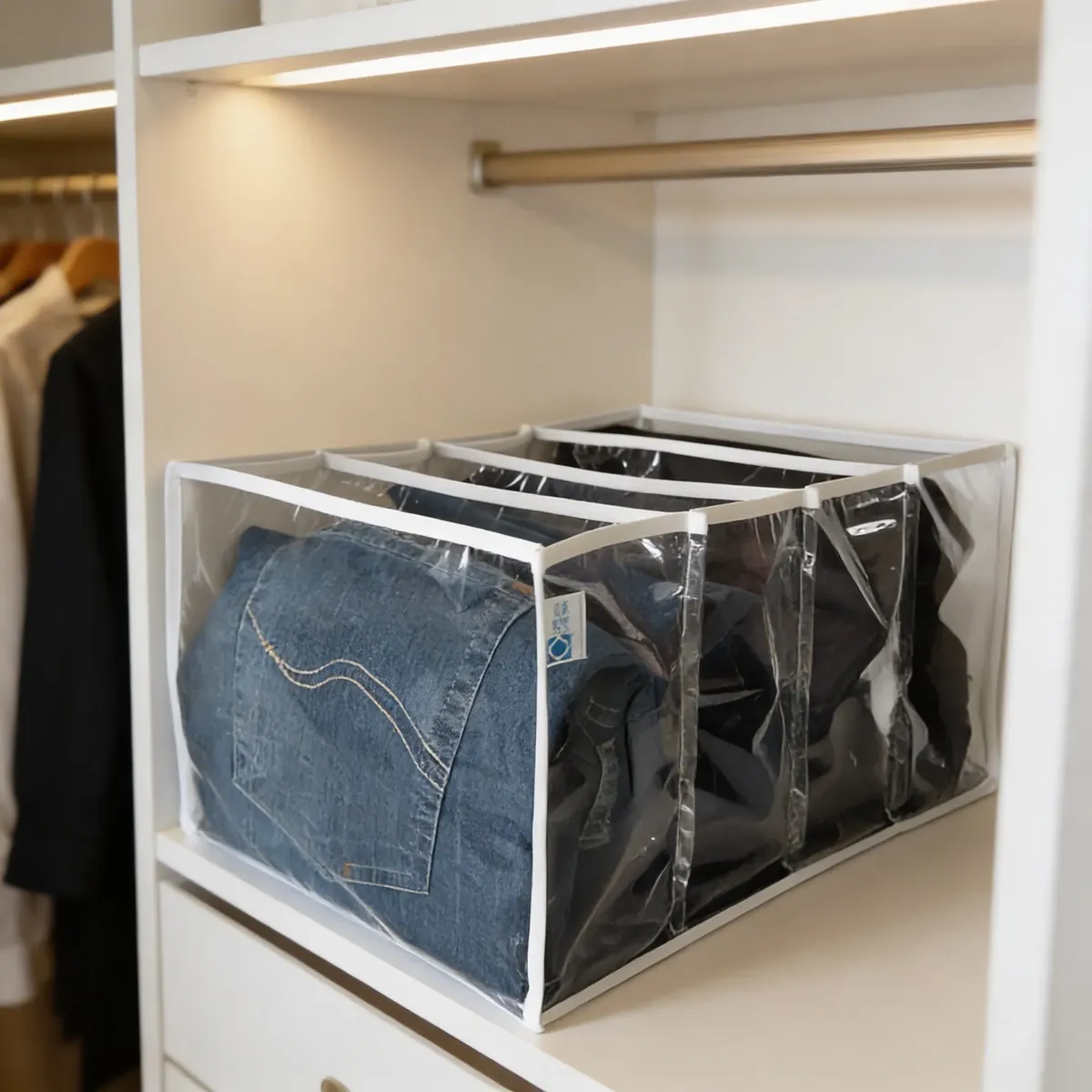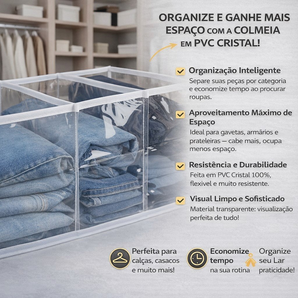 Organize suas calças jeans de forma prática e eficiente com a Colmeia Organizadora. Ideal para manter tudo visível, bem distribuído e sem amassar.