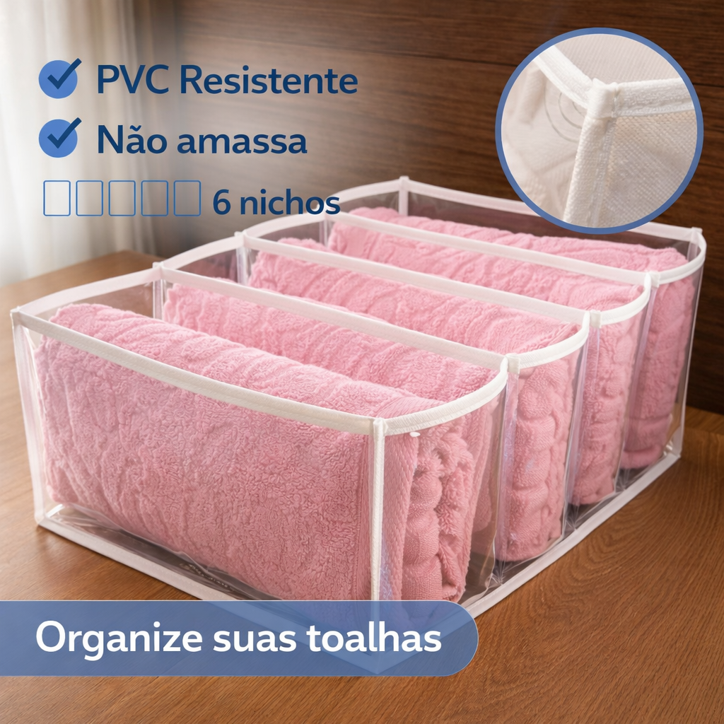 Mantenha suas toalhas sempre organizadas, dobradas e de fácil acesso com a Colmeia Organizadora. Ideal para otimizar espaço e deixar seu ambiente mais funcional.