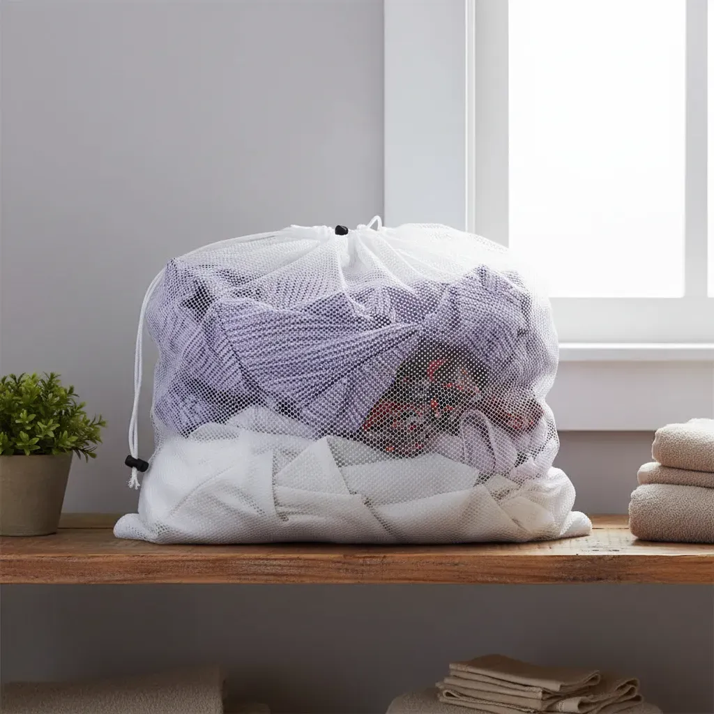 Proteja suas peças durante a lavagem com o Saco para Lavanderia Cia das Capas. Ideal para evitar danos, ele mantém suas roupas seguras dentro da máquina, aumentando a durabilidade e preservando os tecidos.