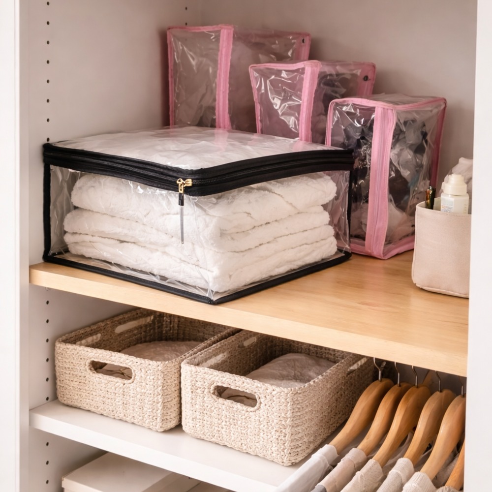 Chega de bagunça! Com os Organizadores em TNT 80, você mantém tudo no lugar de forma prática, protegida e fácil de visualizar. Ideais para otimizar espaço e deixar seu ambiente muito mais organizado.